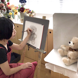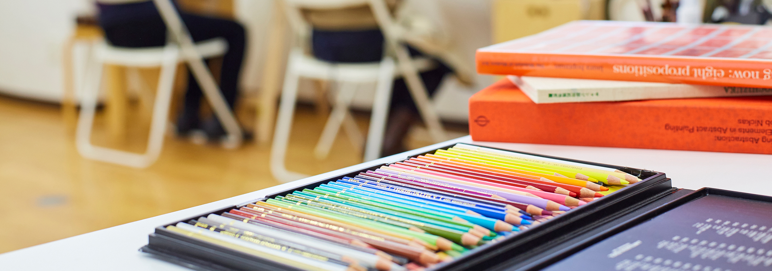 - 基本的な画材はアトリエでご購入いただけます。また、ご自分の画材をお持ちでしたらご持参頂き、アトリエでの保管も可能です。何の画材を使って描きたいかがわからない方には、各画材1作品完成までお使いいただける「お試し画材」を無料でご利用いただけます。